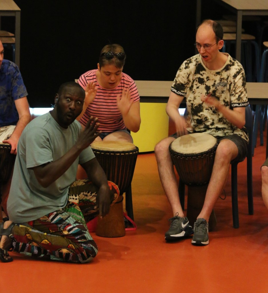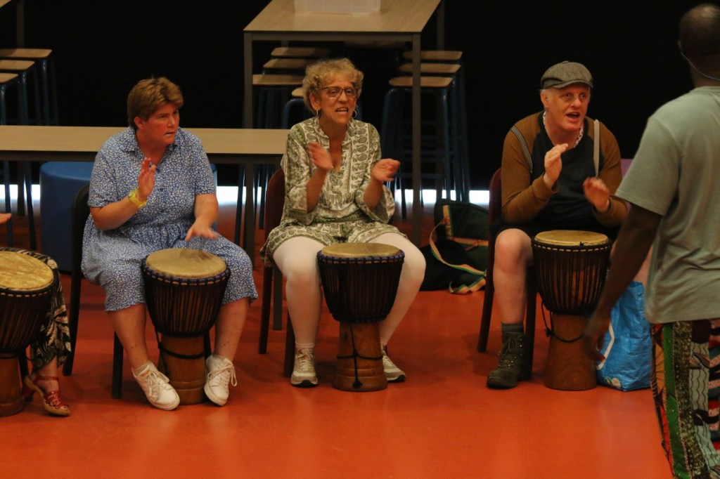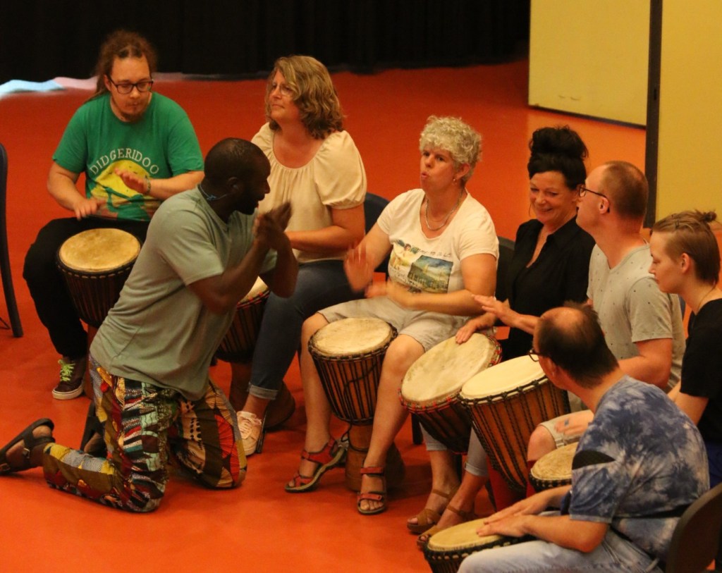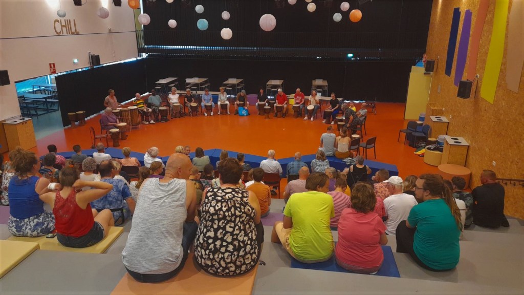 Wat een feestje om dit project te organiseren. Dankzij een bijdrage uit Het Fonds van de gemeente Ooststellingwerf konden we met Kunst & COO gratis djembélessen aanbieden aan 5 zorgboerderijen, OlmenEs en De Vrijheidshof. 17 juni gaven deelnemers een presentatie samen met de leerlingen van Moustapha.