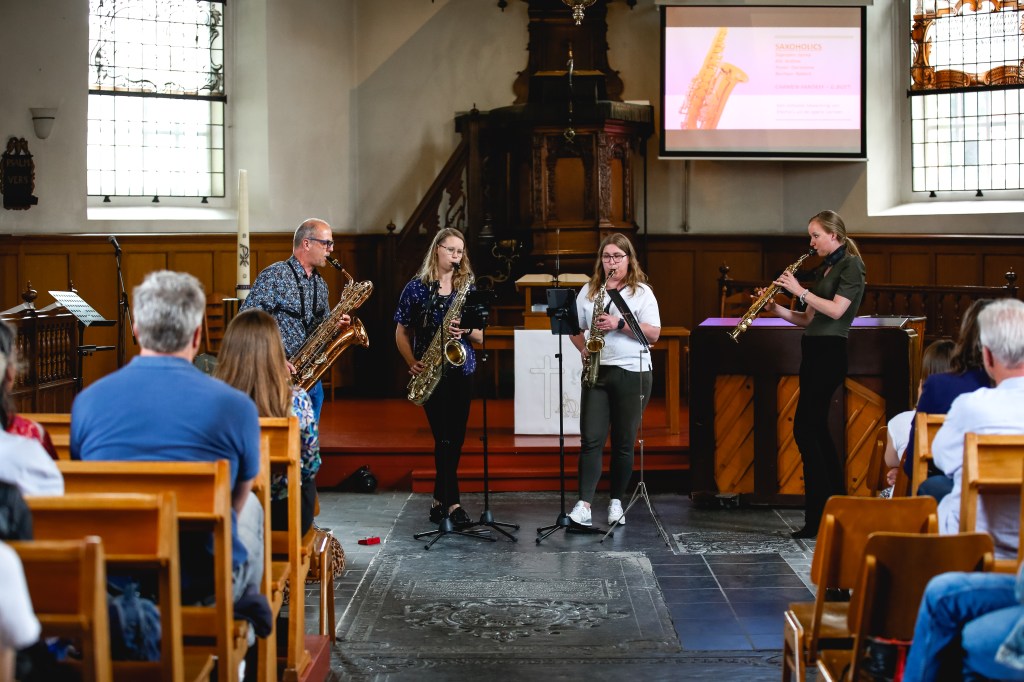 1 juni kwam pianiste Elvire Boelee weer naar Akkrum om mijn leerlingen te begeleiden. Een grote meerwaarde voor de gevorderde leerlingen, die zo het werk dat ze studeren ook echt een keer uit kunnen voeren. Ook het Jouster Saxofoonkwartet Fier was te gast, wat weer zorgde voor extra inspiratie. Media by Amber maakte onderstaande mooie foto’s!